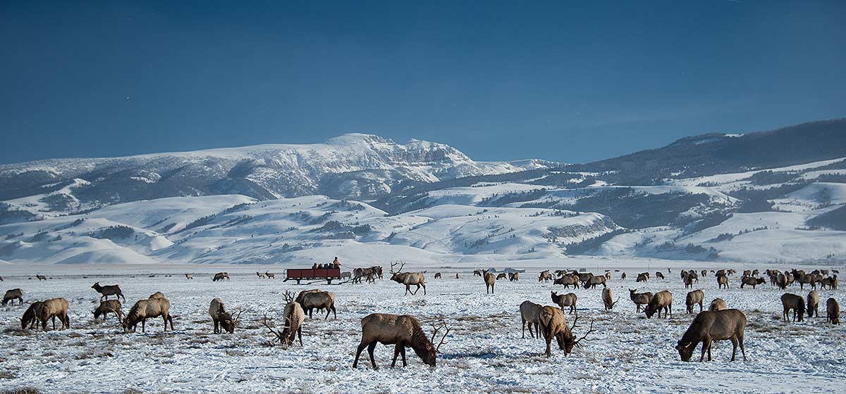 Jackson Hole is also home to the National Elk Refuge, offering horse drawn sleigh rides through thousands of elk, while learning about their ecology and history from expert naturalists.